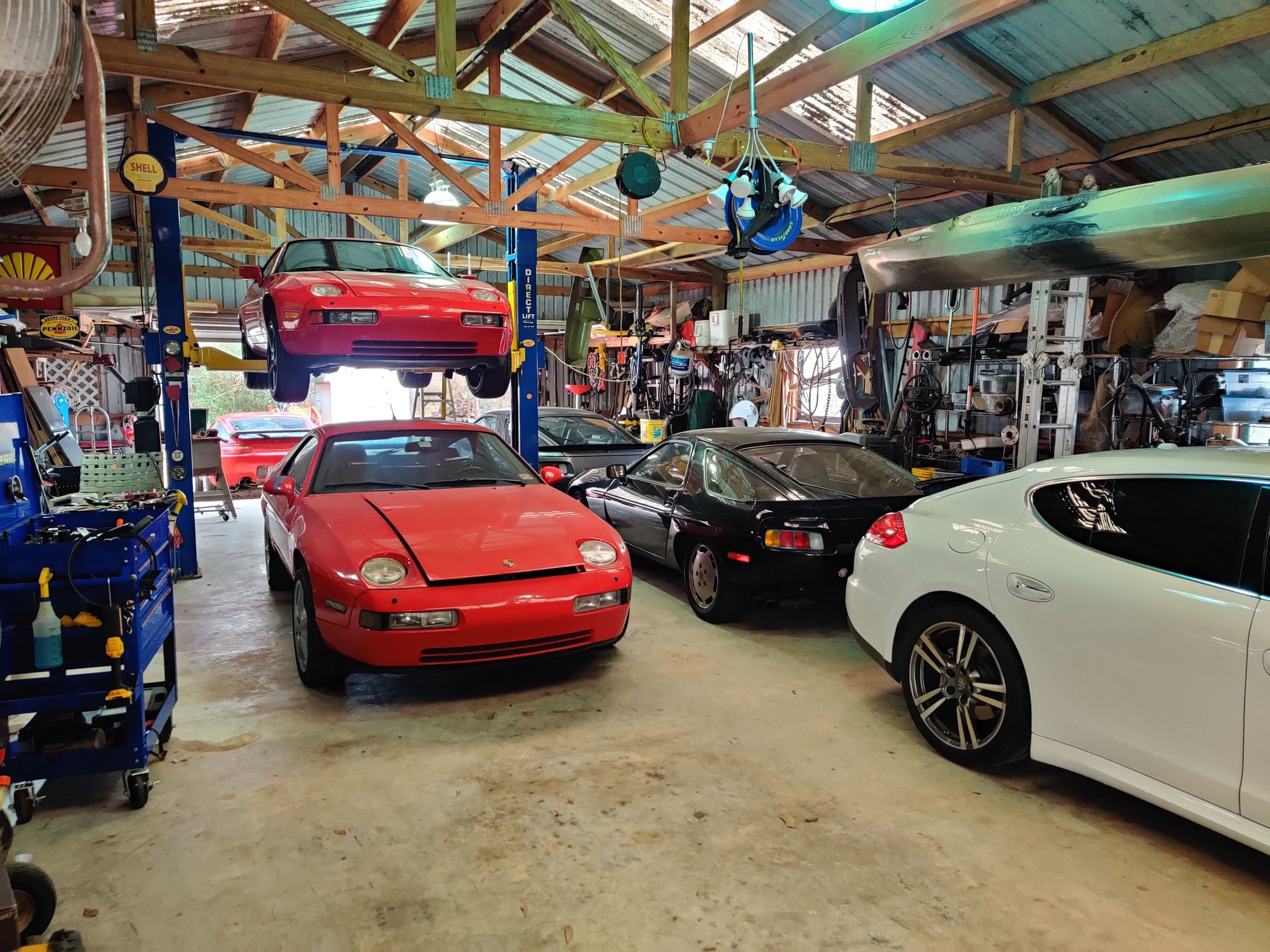 The garage is a bit tight right now after buying a 5th 928, but I hope to sell the black '82 before too long. As you can see, the empty spot where I am standing is the VERY important spot for the wife's car. Don't forget that.