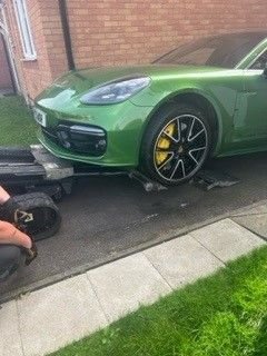 Car is in Neutral, park brake off but still feels like its in Park. Porsche could not retrieve it so awaiting a crane to lift on to a truck