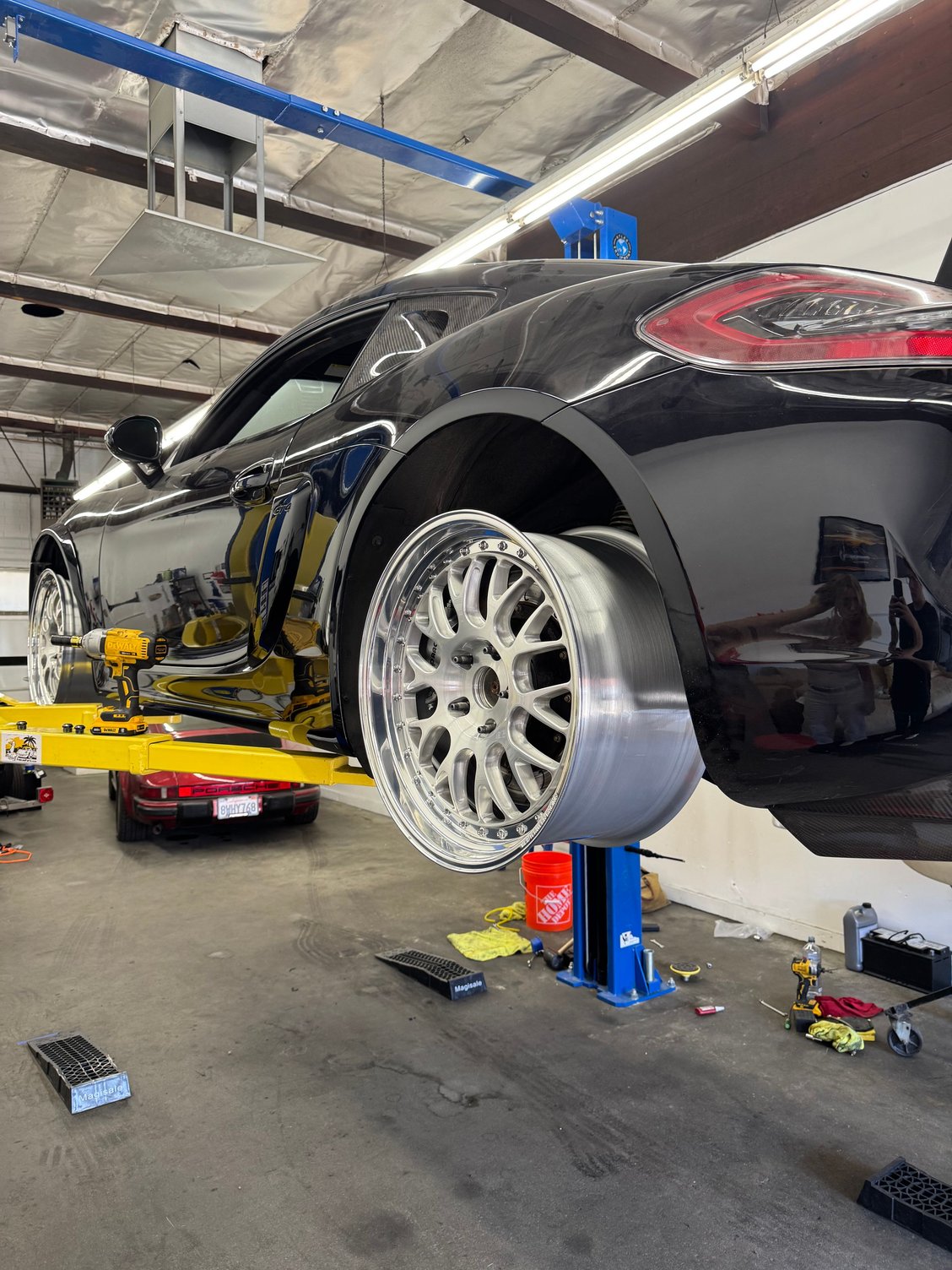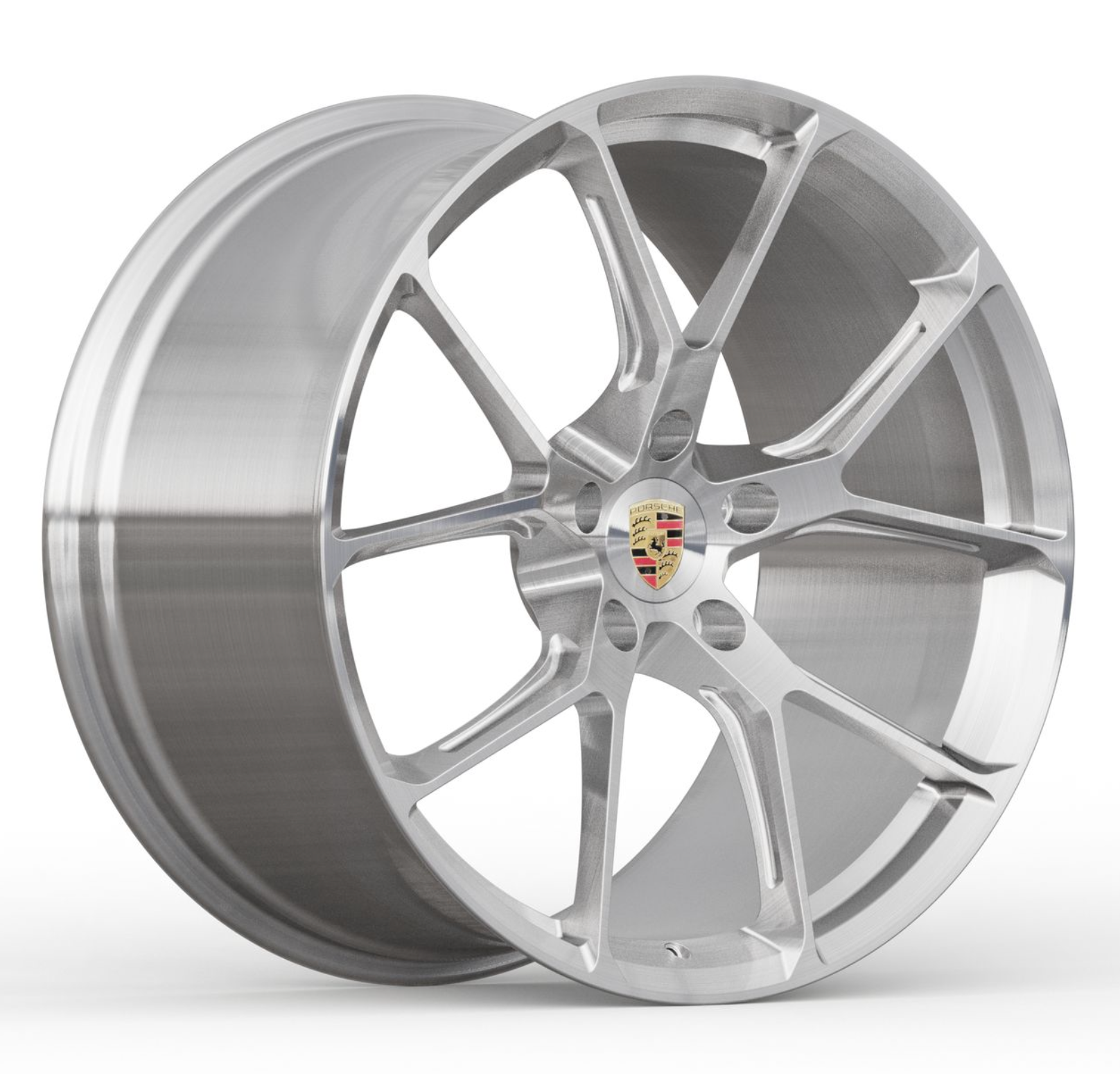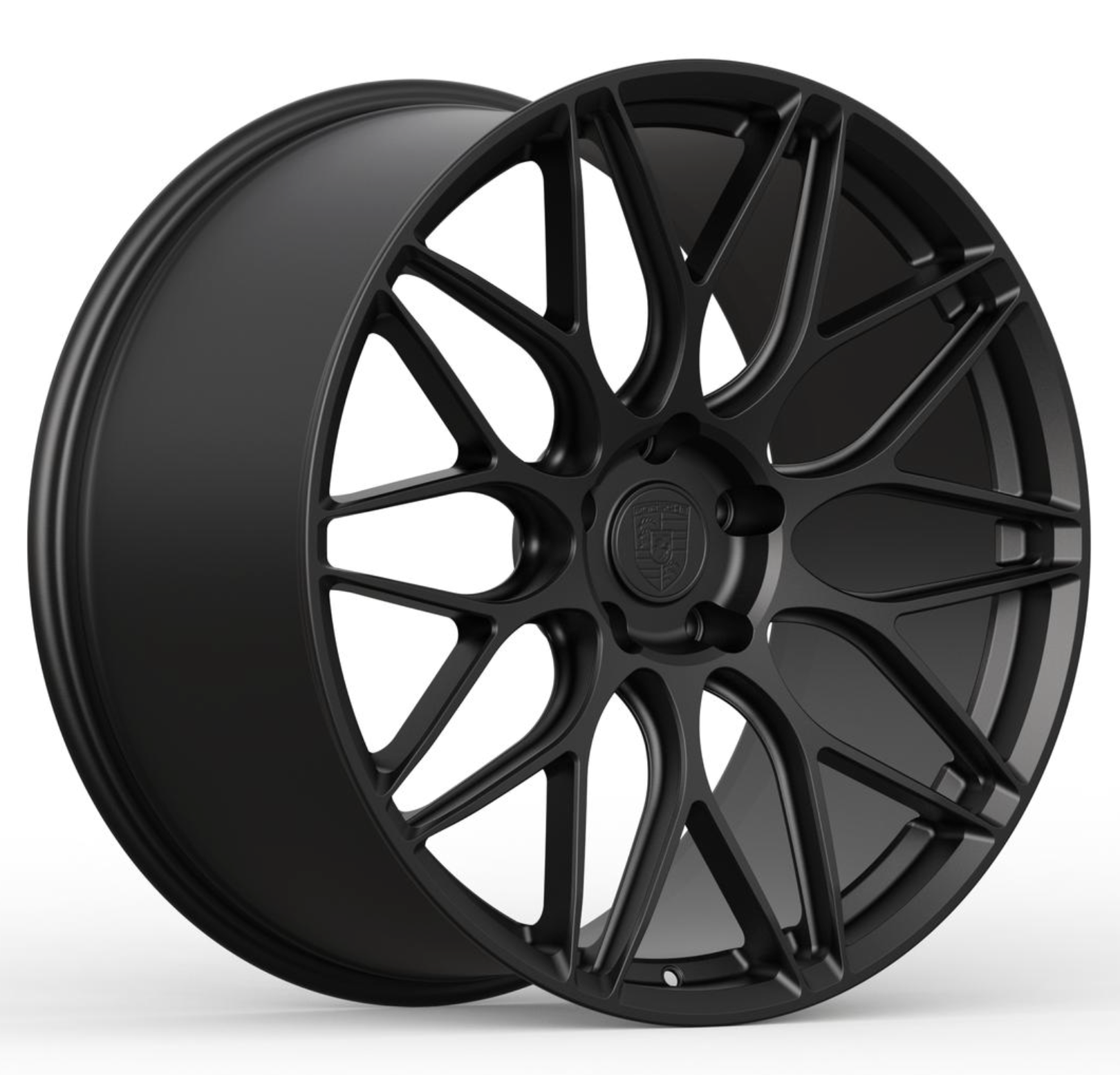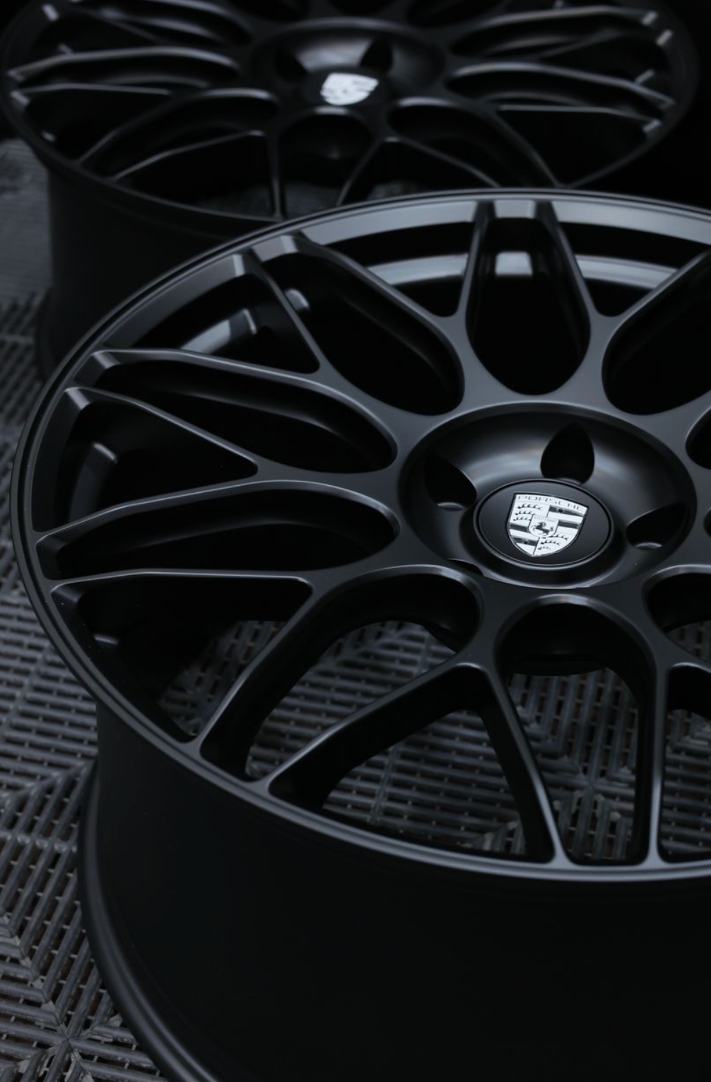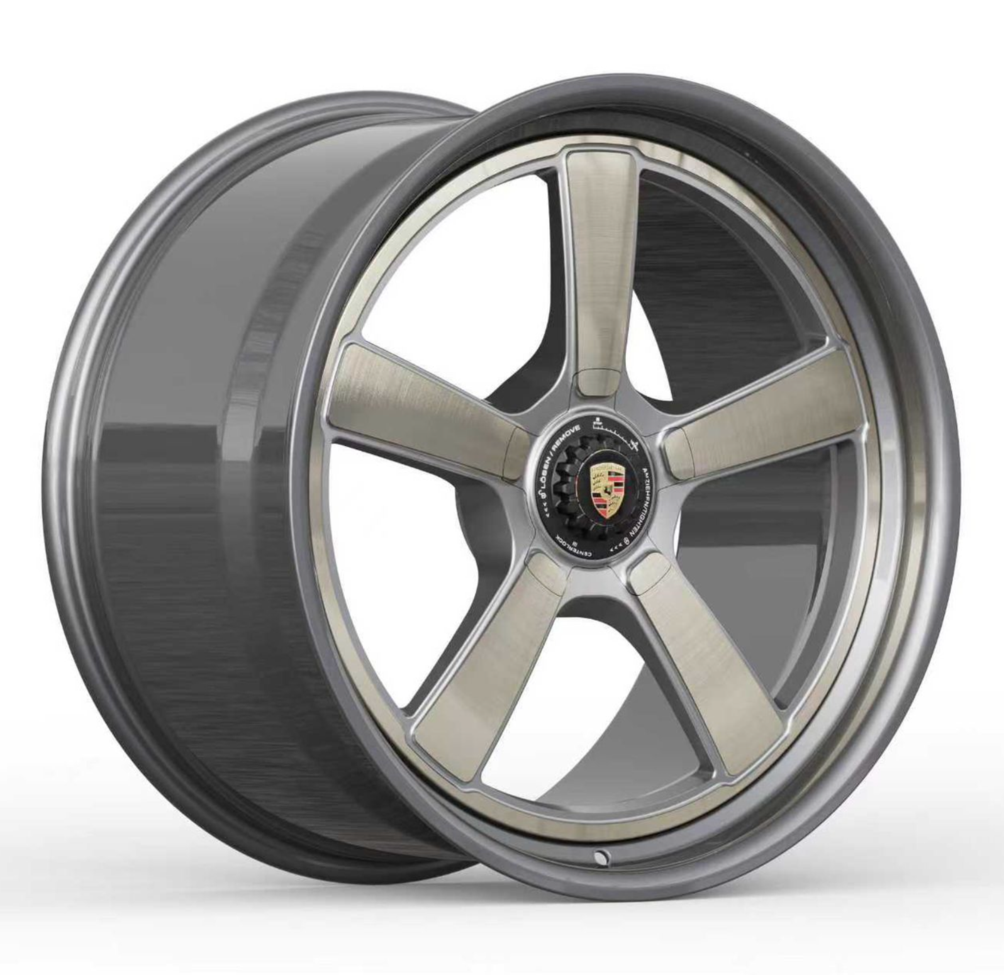 A set in progress, a 992.1 OEM GT3 wheel design adapted for a 5-lug 992 C4S. We offer faux center lock options in nearly any design, available in both monoblock and multi-piece configurations. This set features a faux center lock that neatly threads into the center bore for a clean, cohesive look.