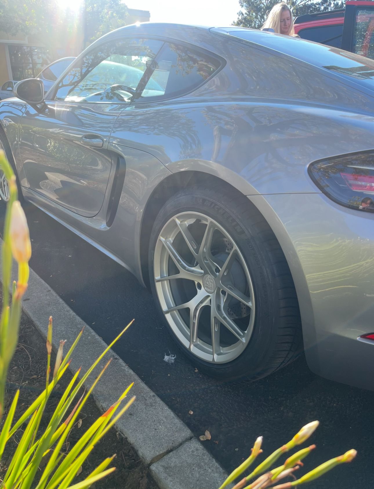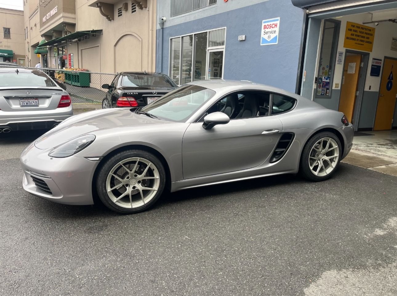 A perfect 718 Cayman on our MW-07 in OE Weiss Gold (white gold). Subtle offset tweaks from stock for that flush OEM+ stance.