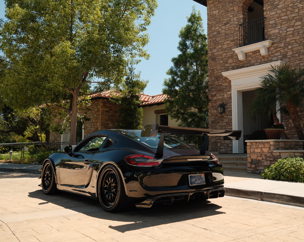 Some shots from a couple weeks ago — my 981 GT4 fitted with our 2 piece wheels, 1 of 1 titanium race pipe, custom houndstooth seat inserts, and plenty of other mods. The 981 GT4RS that never was!