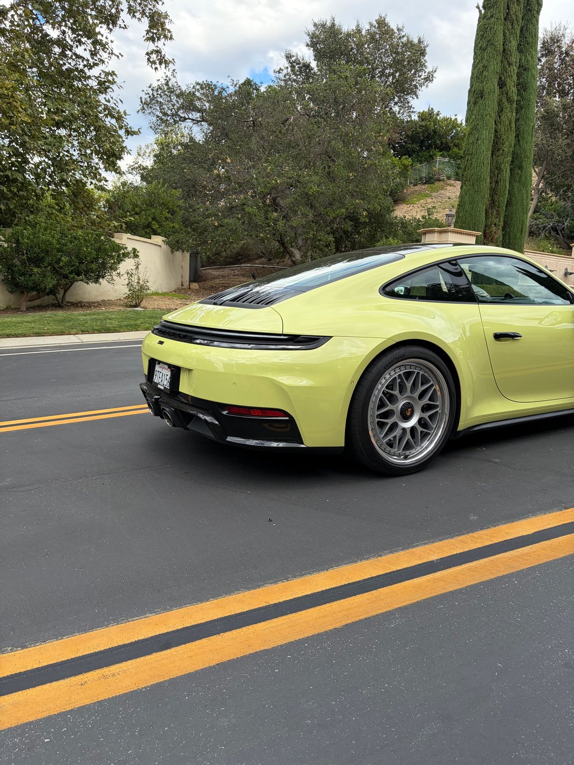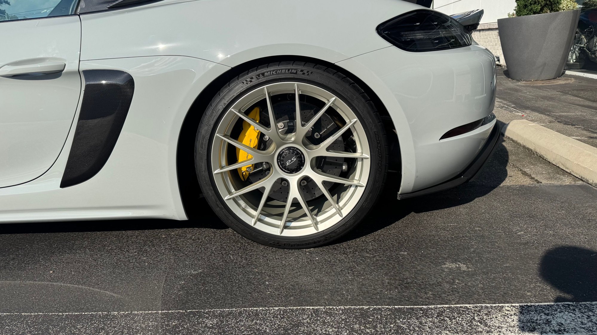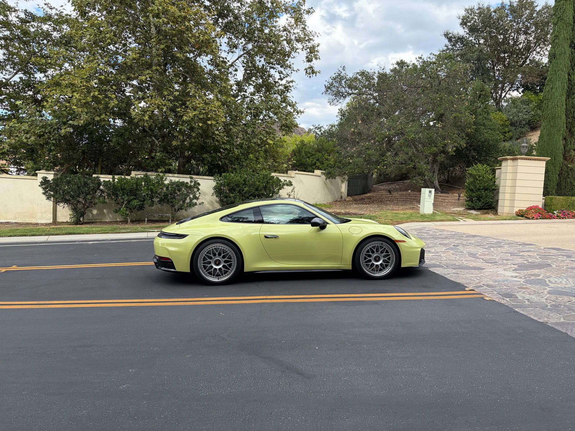 Our MM-03 finished in OE satin brilliant silver with polished lips and stainless hardware, now mounted on a brand new 2025 992.2 GTS T-Hybrid.