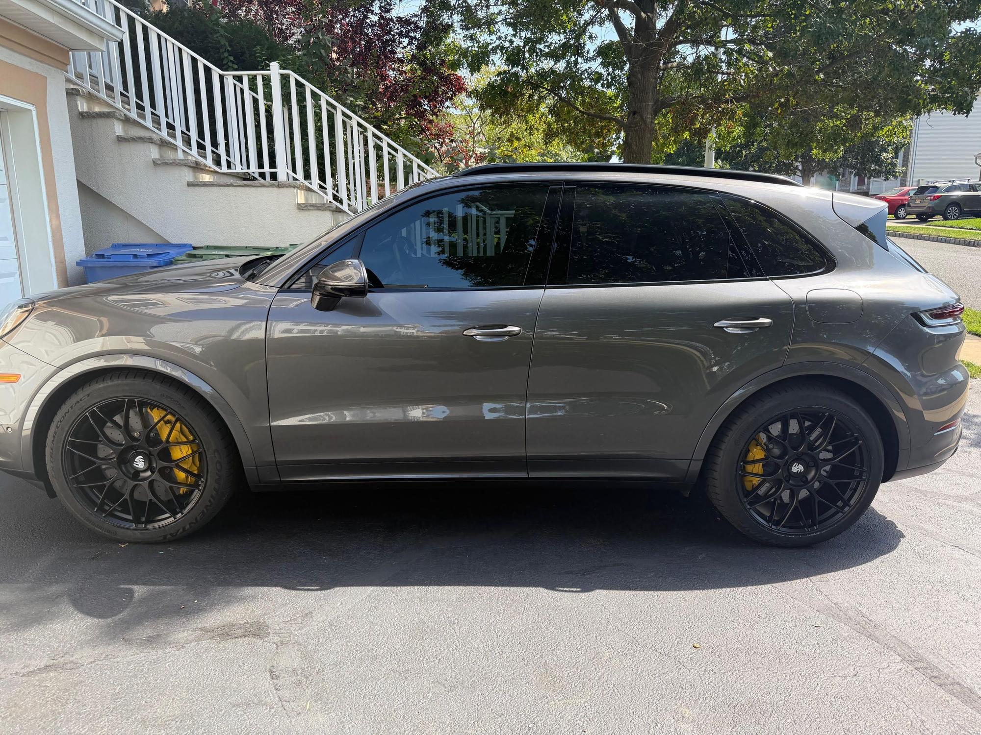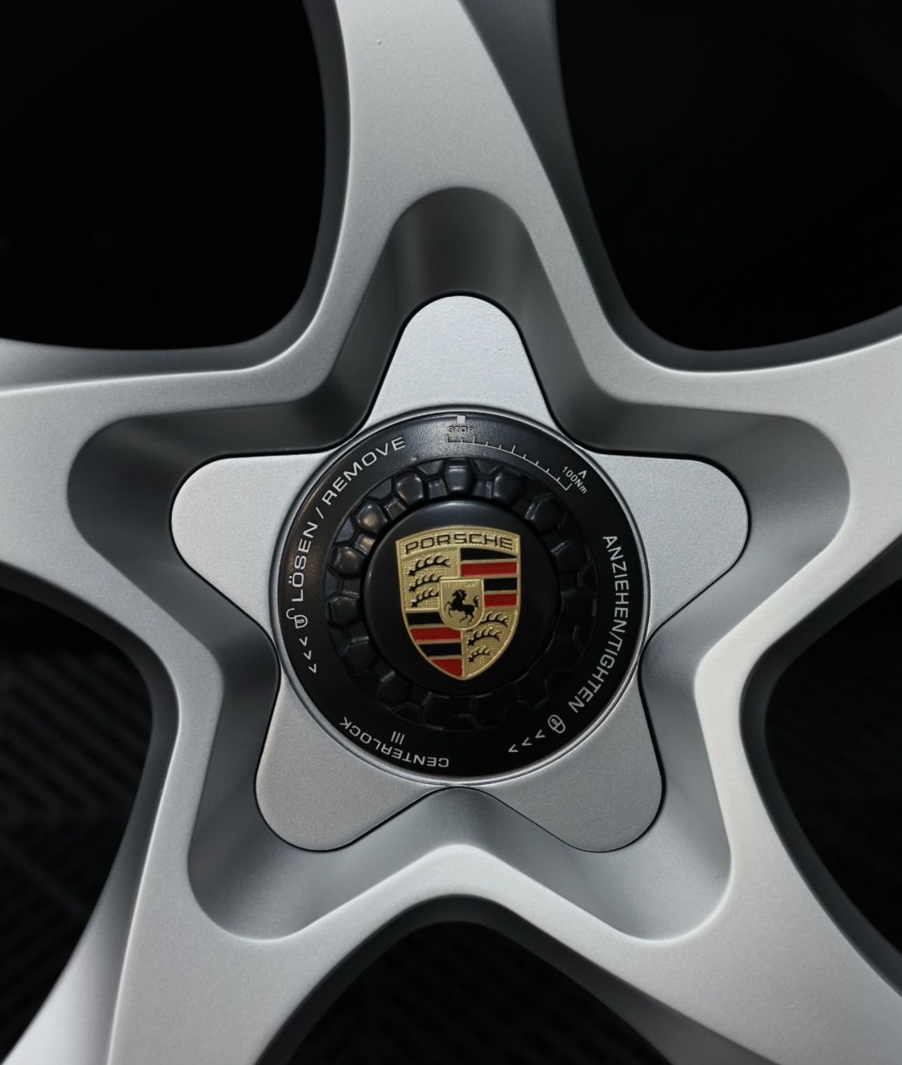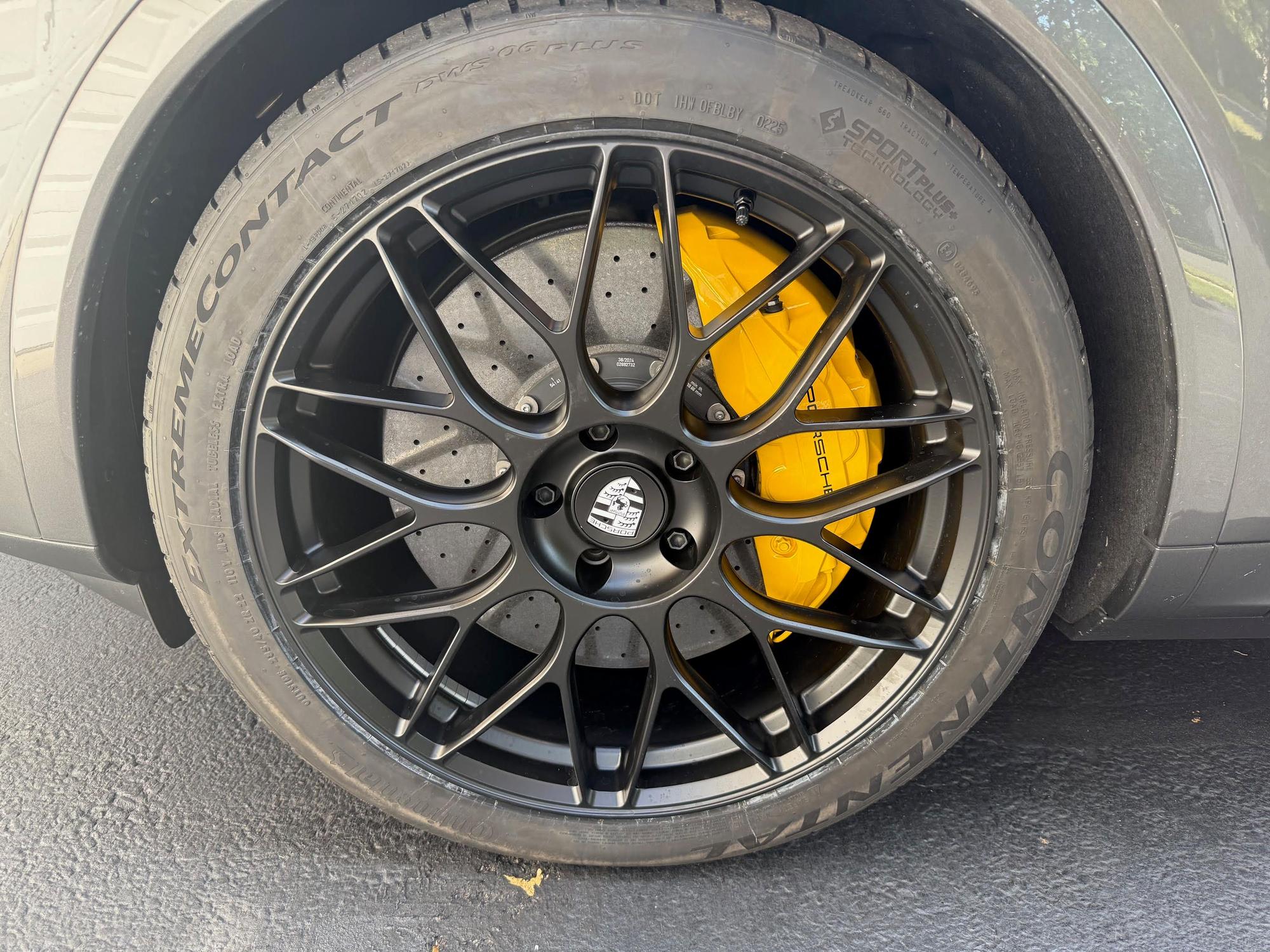 Some recent on-car shots of a custom set built for a 2025 Cayenne Turbo Hybrid, finished in satin black with black and white crests, and engineered with reinforced load ratings to handle everything the Cayenne can throw at them. Fitment was also modified from that of stock to provide an OEM+ fit!