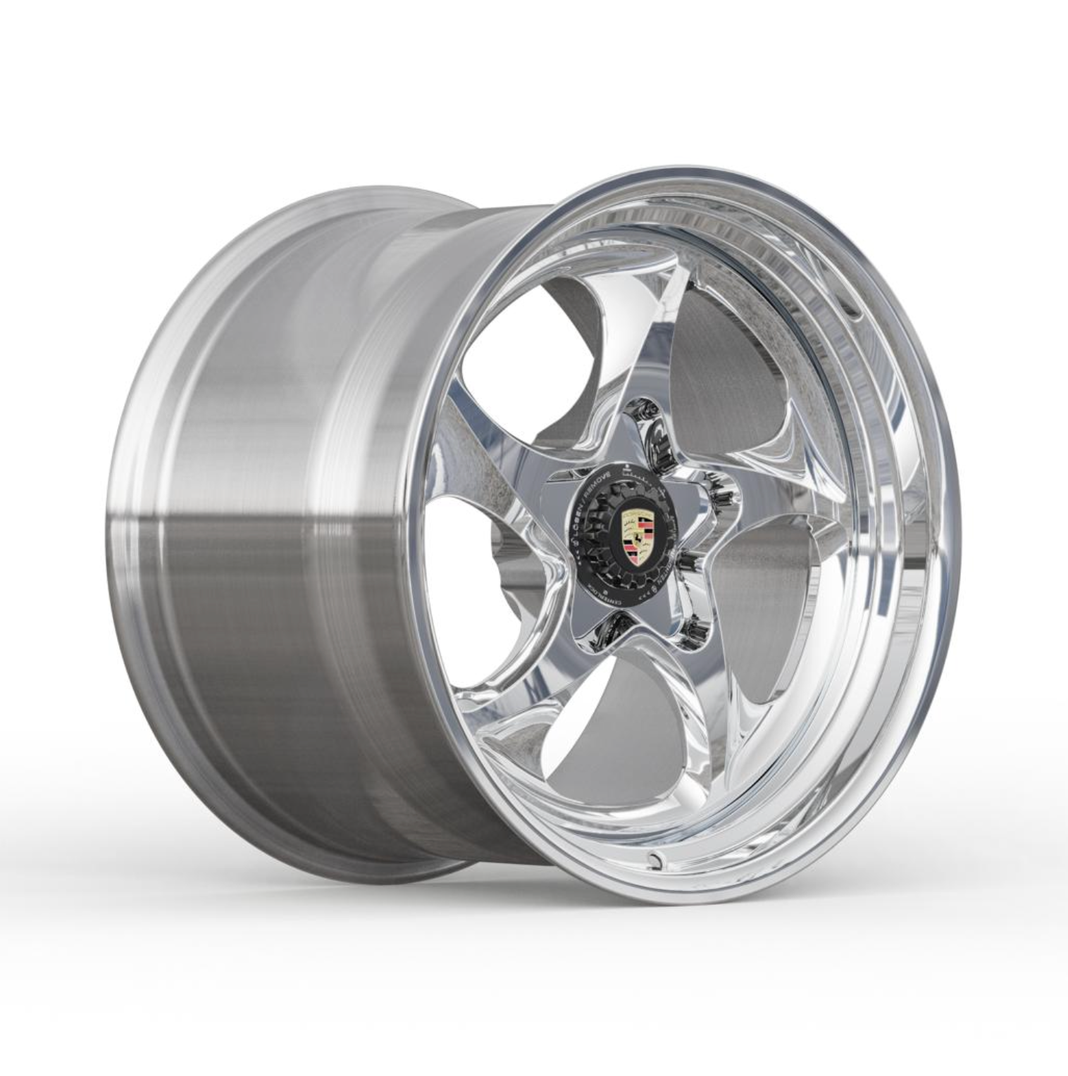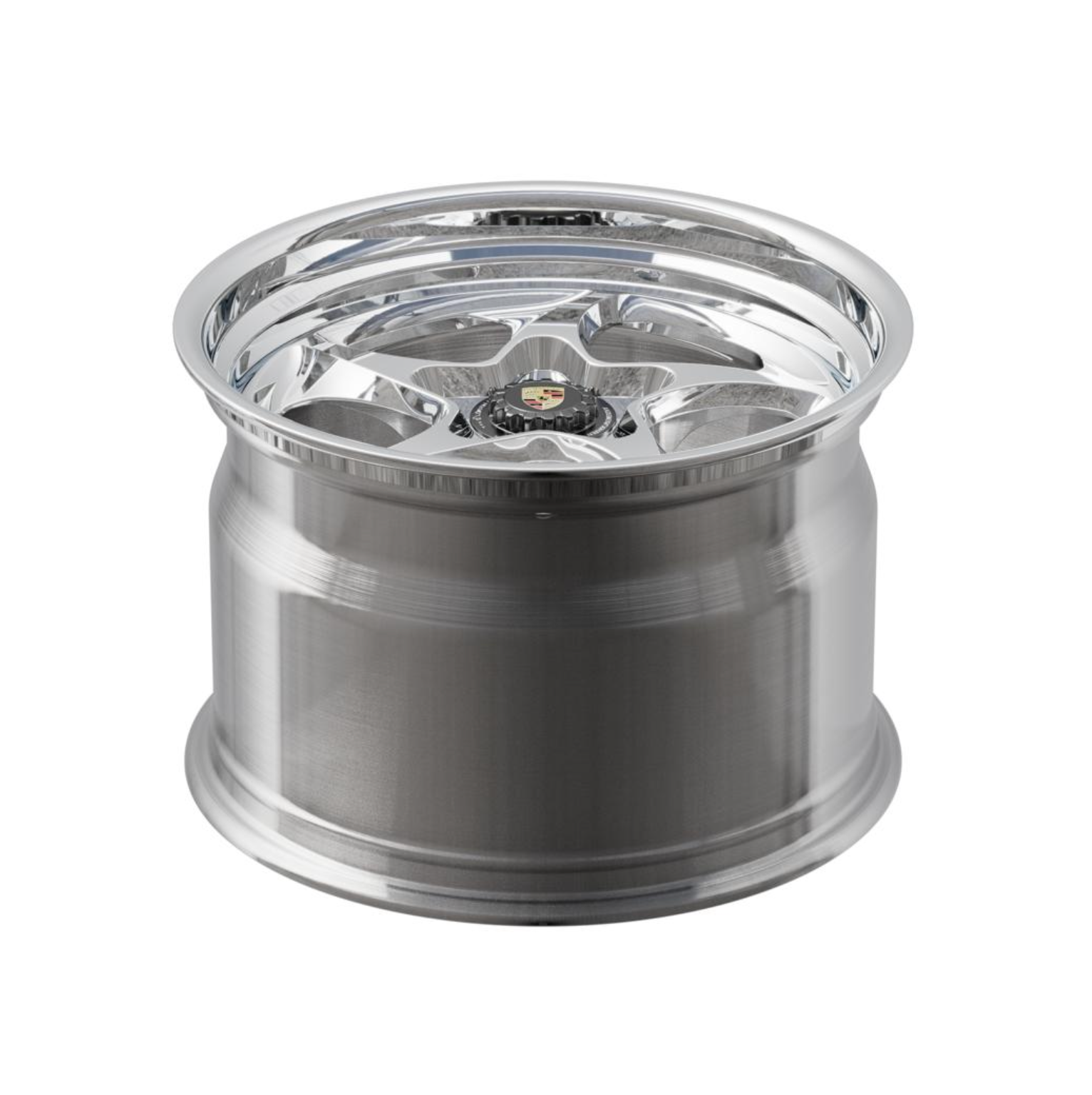 We also offer faux centerlock options in nearly any design, available in both monoblock and multi-piece configurations. This particular 2-piece set features a faux centerlock that threads neatly into the center bore, creating a clean and cohesive look that gives the appearance of true centerlocks without the actual headache of them. This set is currently in progress for a 996 Turbo with a polished face and polished lips.