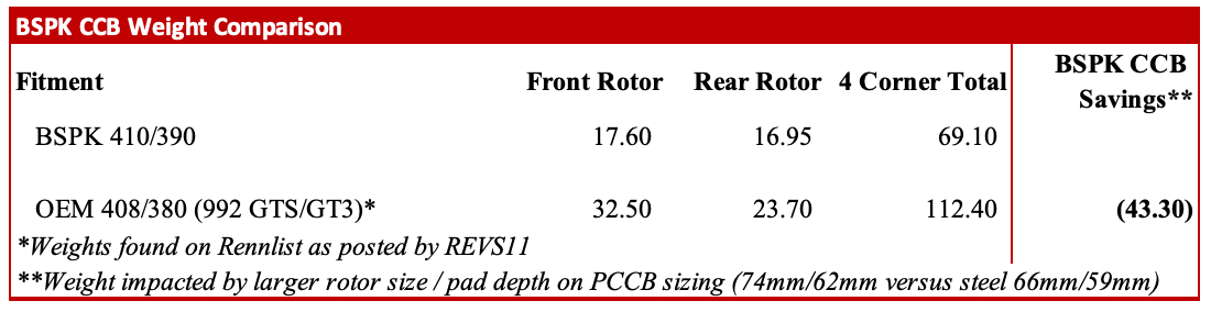 Unlike steel rotors that wear down and require frequent pad replacements, BSPK CCBs are designed to last the life of your car for most users. Even heavy track drivers will see dramatically extended longevity compared to traditional setups—with reasonable replacement costs if/when needed.. As someone who tracks regularly, this is one of the most exciting elements IMHO. We've been teased with the performance of CCBs for decades but replacement cost made tracking with CCBs wildly impractical, that paradigm is about to change.