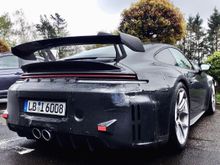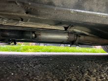 Drain fitting out the bottom is connected to a 3' hose, firesleeved (since it's located down the inner engine bay wall in the area of the exhaust manifold & turbo), and then has this drain valve at the bottom. Putting the air suspension into Terrain Mode makes it easy to slide underneath and drain the collection hose & reservoir