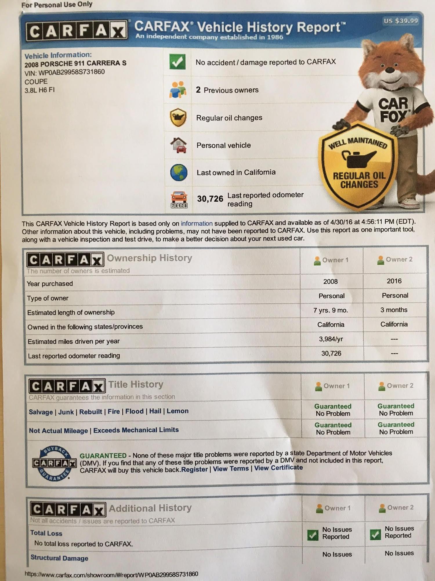 Carfax from when I bought it p1