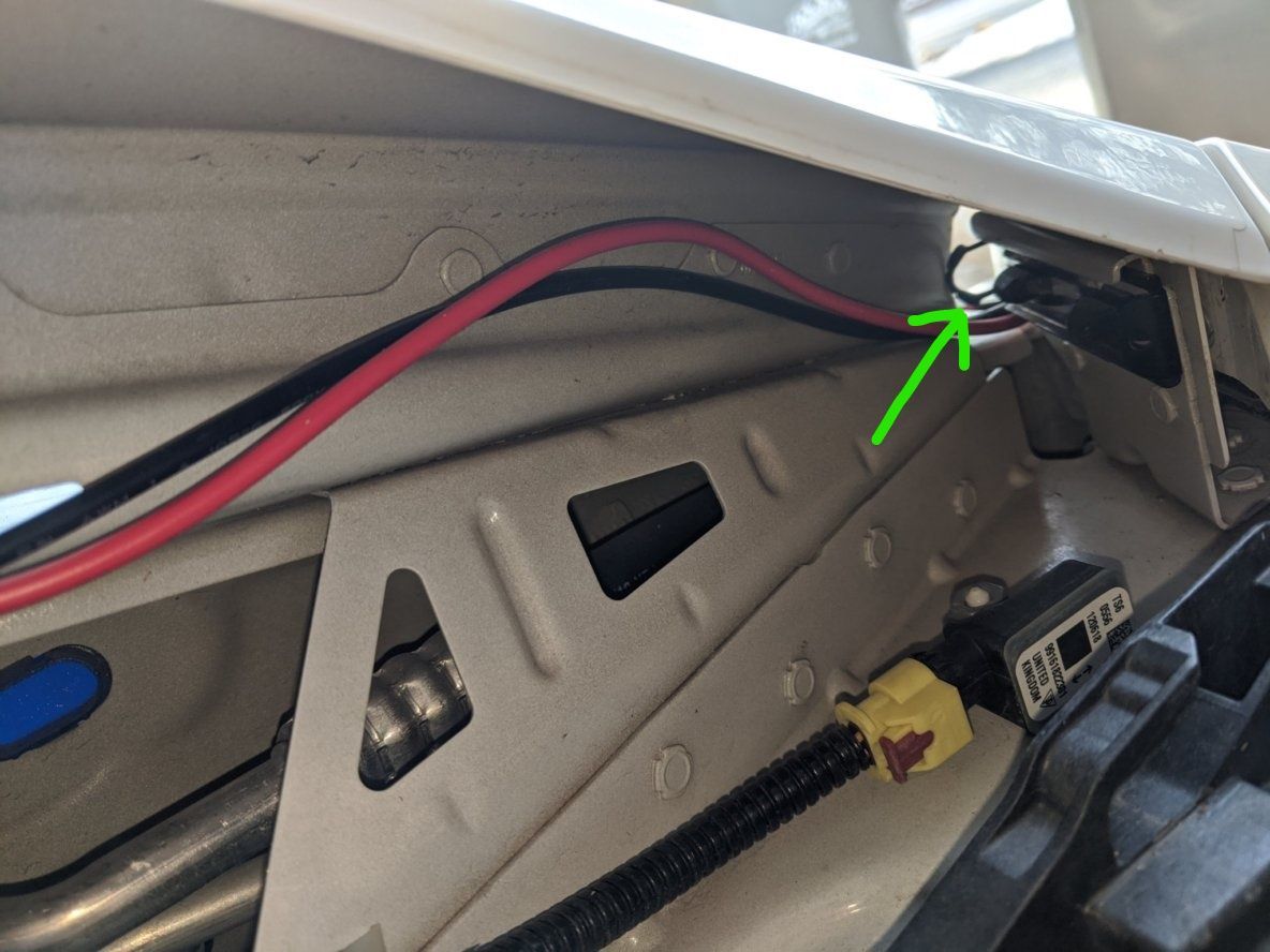 green arrow points at clip. you don't have to remove it just pull it out of the way.