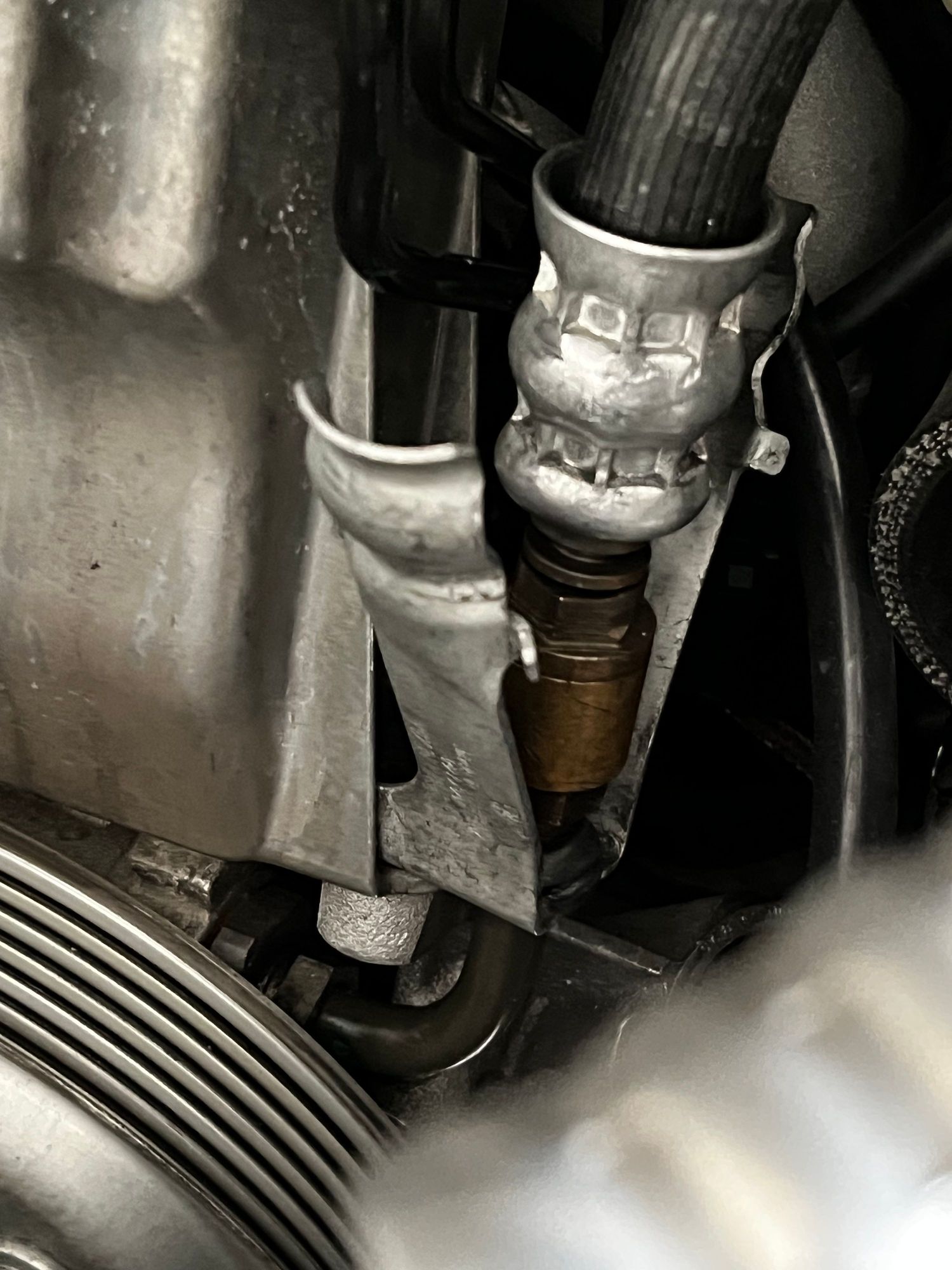 Brass fitting on line going to PS pump.