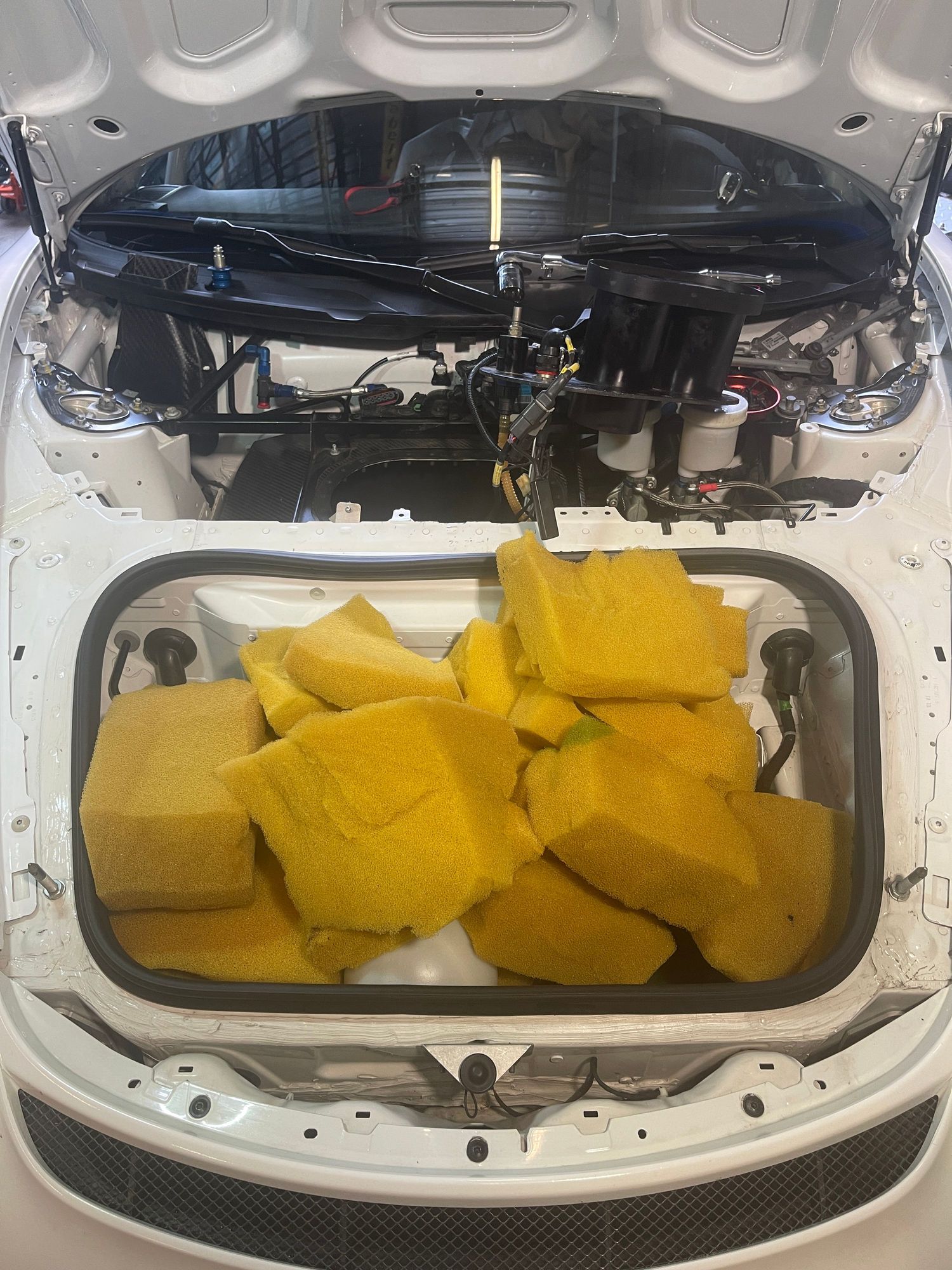 You can see the mess of old foam and failed displacement balls/blocksI pulled out of the fuel cell. It was just crammed in there and smashed into shap by the previous person who worked on the fuel cell before we bought the car.