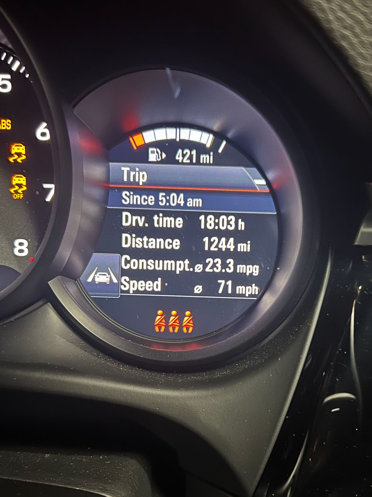 This includes stops, so the average MPH was higher. There's really no traffic out there, so adaptive cruise control was a huge help!