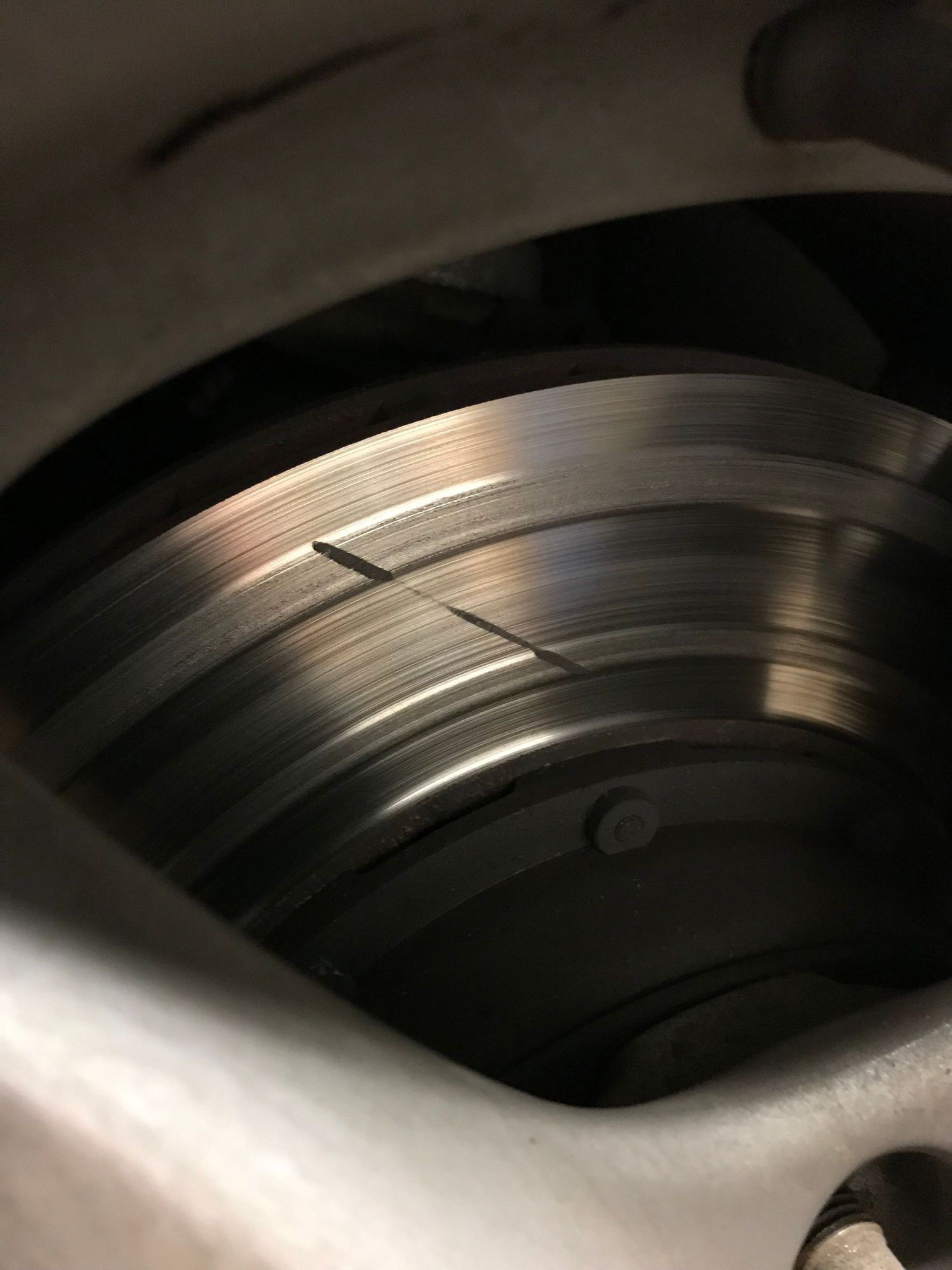 The pads were so worn that the pins attaching the pad compound to the backing plate were causing uneven pad wear (Street pads...)