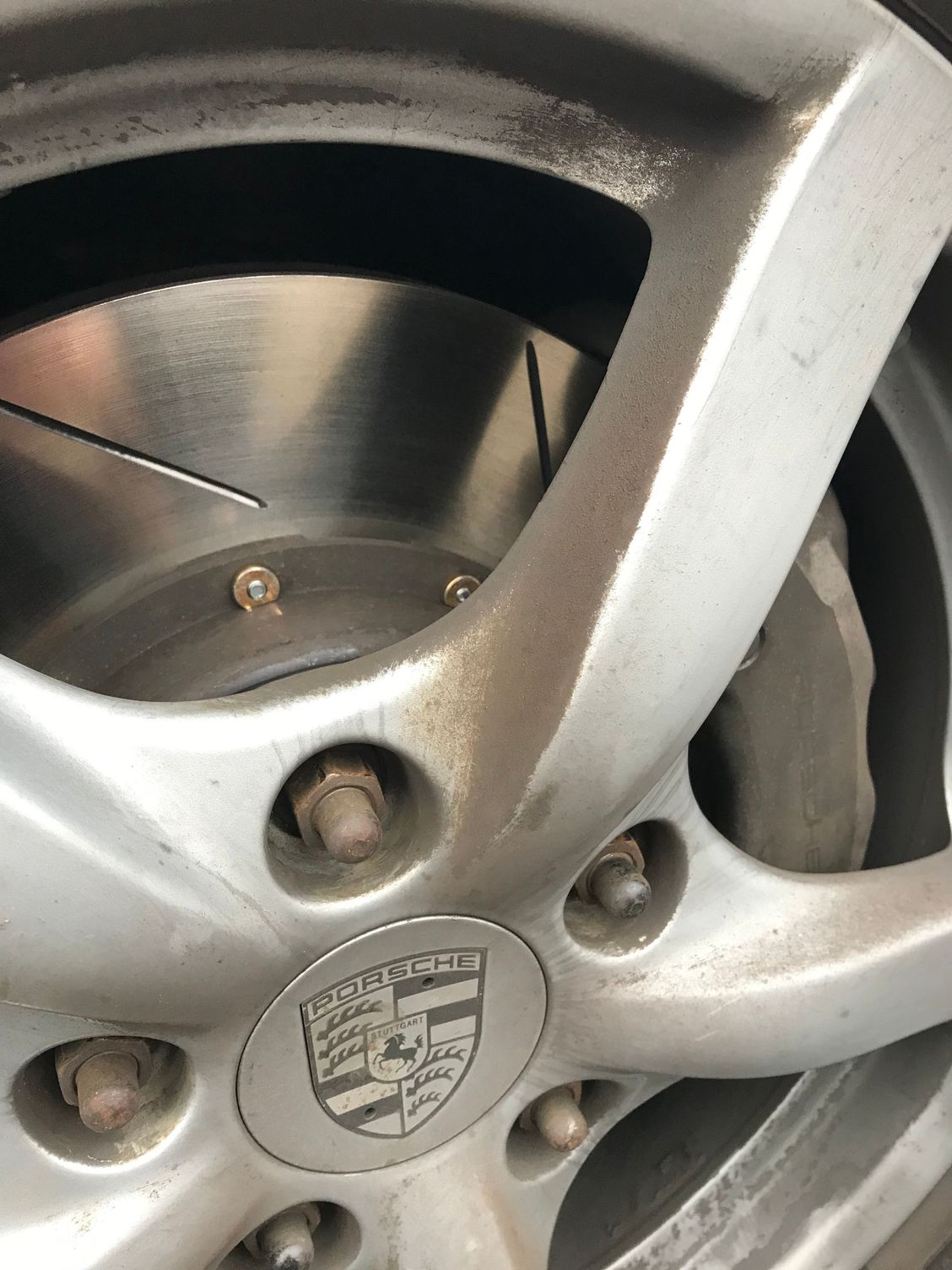 Bedding in new pads cleans up the rotors nicely. Never mind the filthy wheels...