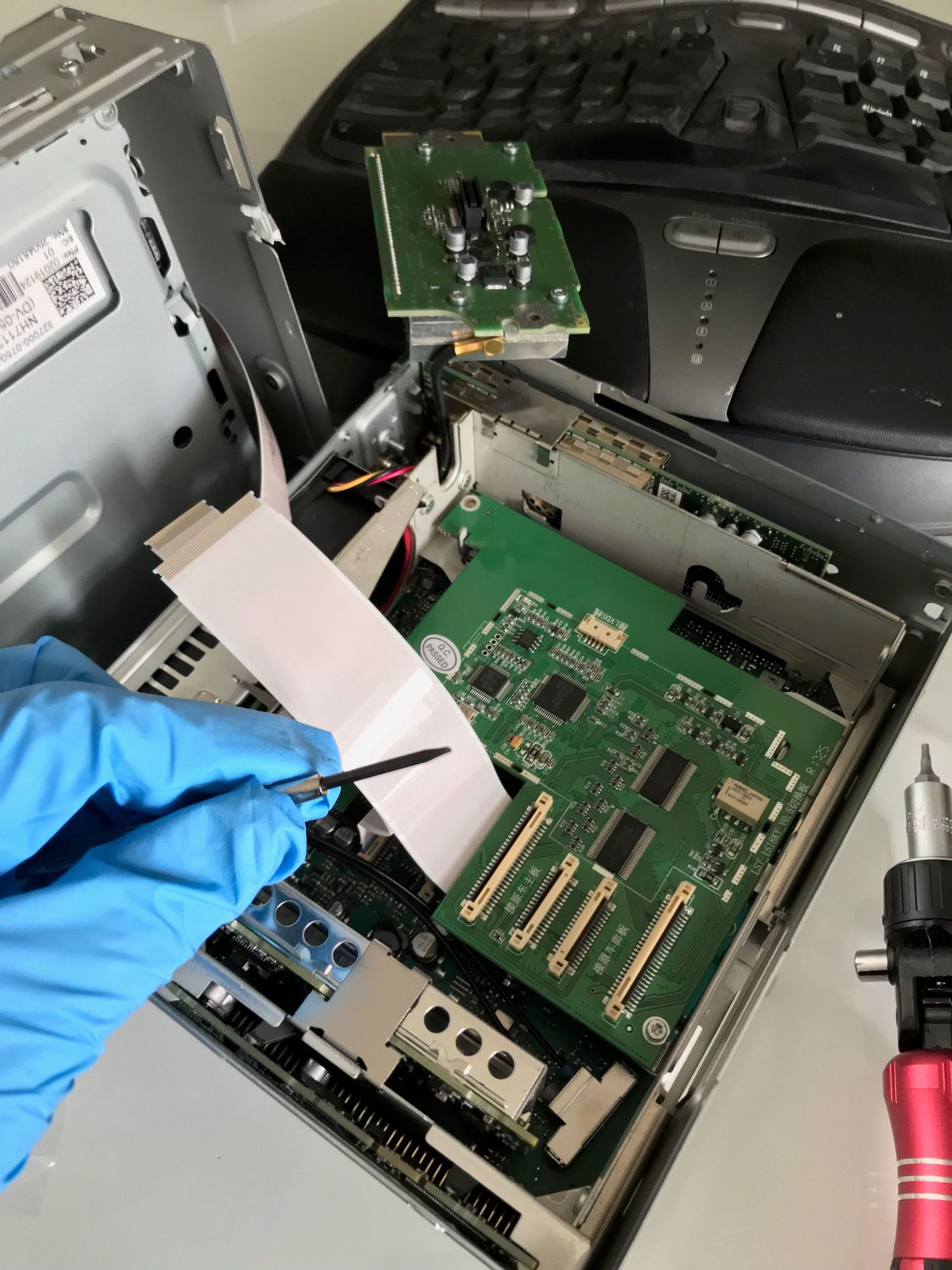 Installing the carplay board in my PCM. Note: that's a hex driver not a soldering iron. NO soldering or cutting of any wires is required!
