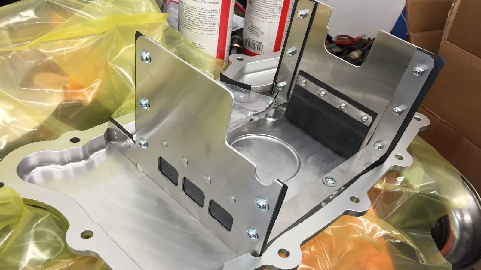 Some M96 engines have on-track oil starvation issues directly related to the high G-forces associated with track driving. In addition to using a high quality engine oil that is well-suited for the race track, a deep sump oil pan and oil pan baffles can help prevent oiling issues. A deep sump pan will add up to 2 additional quarts of engine oil capacity to reduce the chance of oil-starvation from oil not being returned to the pan fast enough. Similarly, pan baffles work to ensure a constant supply of oil pressure by keeping oil around the centrally located oil pickup. Most kits will also include updated 997 oil return tubes to get oil back to the pan as quick as possible.