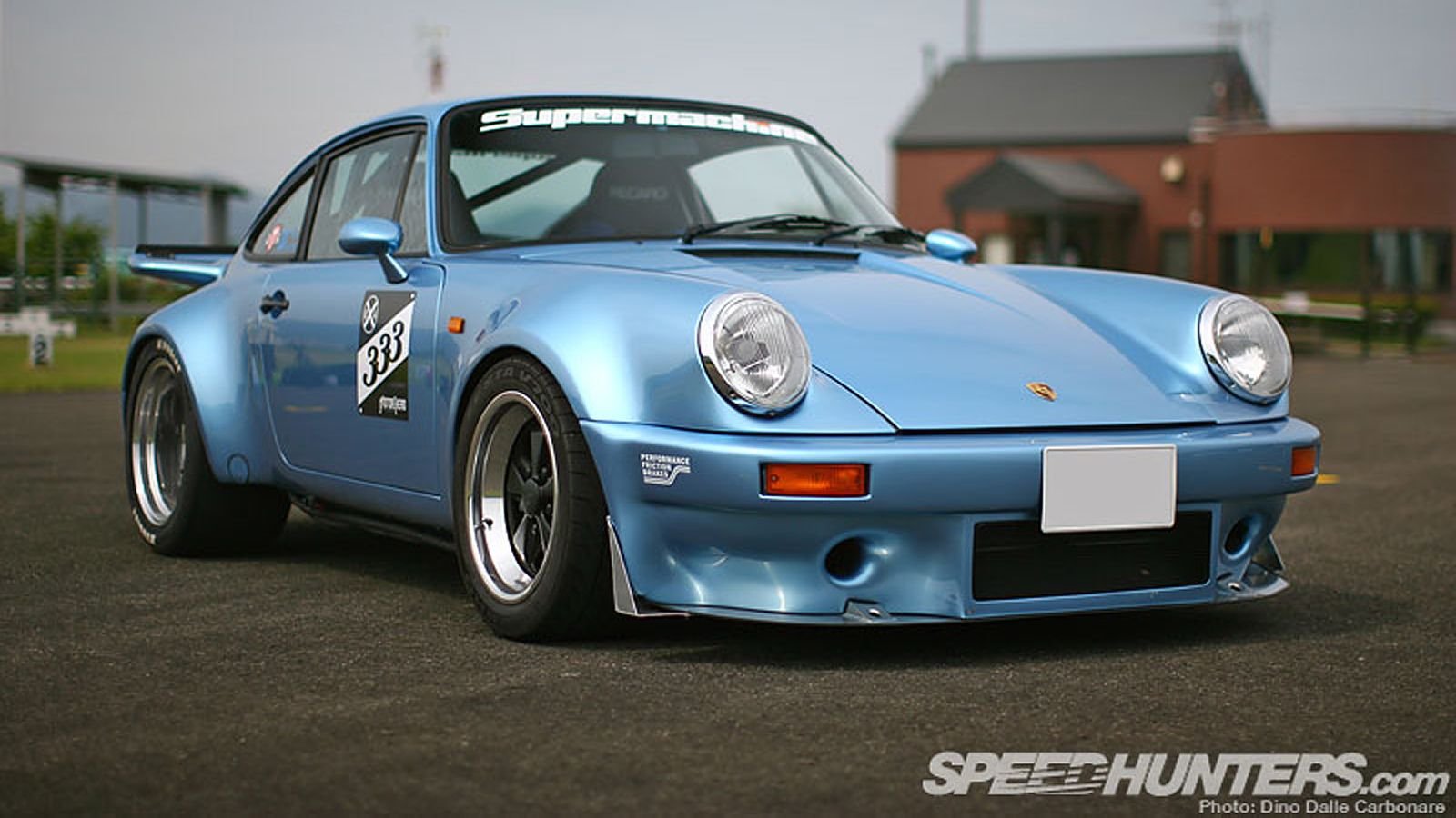 What would you do if an original Porsche 930 Turbo came into your possession? What if it still had the original engine? What if you wanted to take it to any track that would have it? Would you put some pipes on it and leave it at that, all nice and classic? Would you pull the original engine and build a full-race flat-six to use in its stead? If you're Tomoya Watanabe, owner of Yokohama, Japan's Supermachine, the answer would be door number 3. Supermachine specializes in customizations (hot-rodding), particularly involving big-in-japan American classics. So, if you are Mr. Watanabe the answer runs more along the lines of 'add two more cylinders and more than double the displacement with a nice American V8.