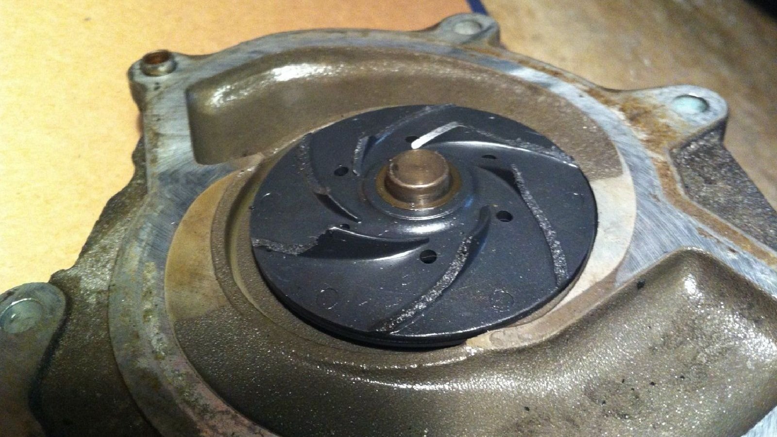 Another failure that can easily wreak havoc on the M96 engine is a bad water pump. These water pumps use plastic impeller blades that are prone to cracking, fragmentation, and subsequent engine overheating. Because of the positioning of the coolant temperature sensor outside of the engine, the temperature gauge won't alert the driver until its too late. To make matters worse, broken impeller blades are sent into the water passages where they can wedge and cause a localized hot spot that will eventually crack or warp the cylinder head(s). Changing the water pump on a 3-year basis, regardless of mileage, can help limit the chances of these problems occurring, and this is a fairly simple DIY project that is easy on the wallet. Remember, the water pump is submerged in coolant even when not being driven, hence the time-based service interval.
