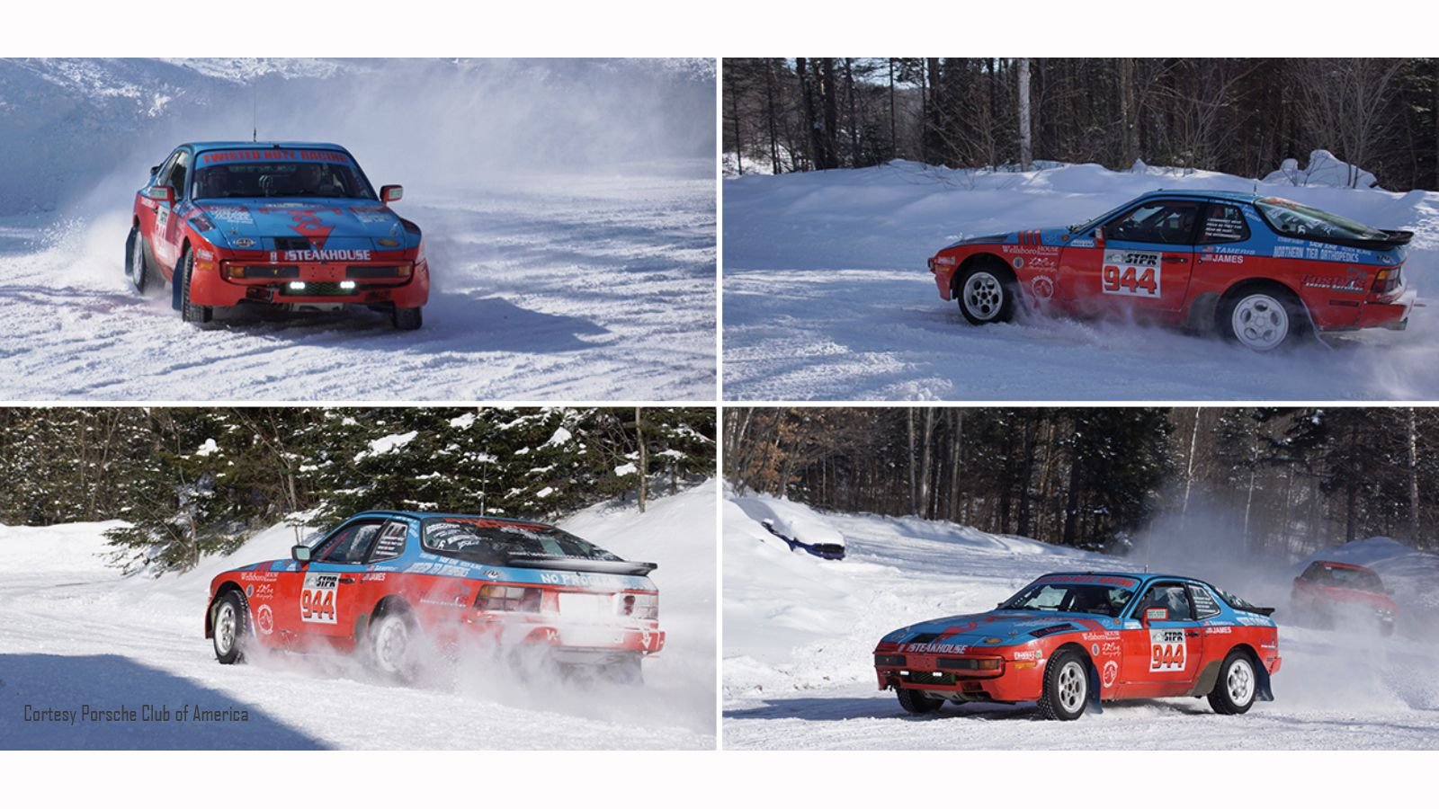 Once you have your Porsche 944 set up for serious rally use, there is no reason to stop racing when the weather turns cold. This Porsche 944 competes in various rally events in the US all year long, some of them in the dead of winter on ice and snow, some just on rutted dirt roads. Take that, people who put their sports cars away at the first sign of winter.