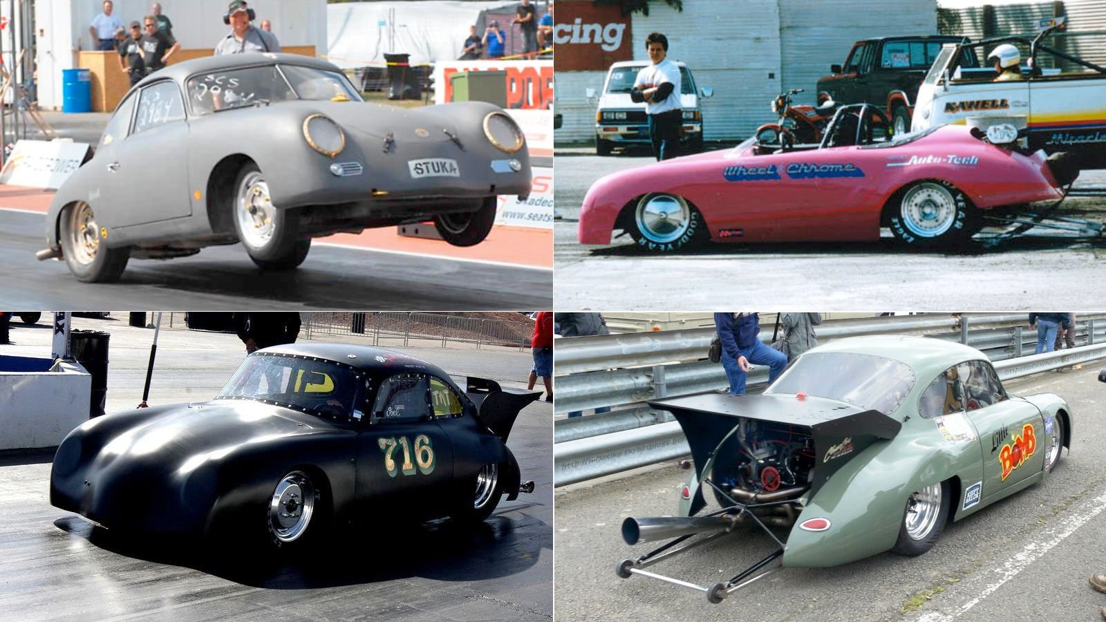 With the going price of classic Porsche 356s it seems crazy that anyone would modify one for something like drag racing, but it has been done. Admittedly, except for the gray car doing the wheelie which is a full steel body, the rest of these may all be fiberglass bodies on VW shells. But this is a good reminder that not too long ago these cars were considered just worn out old foreign jobs with no intrinsic value.