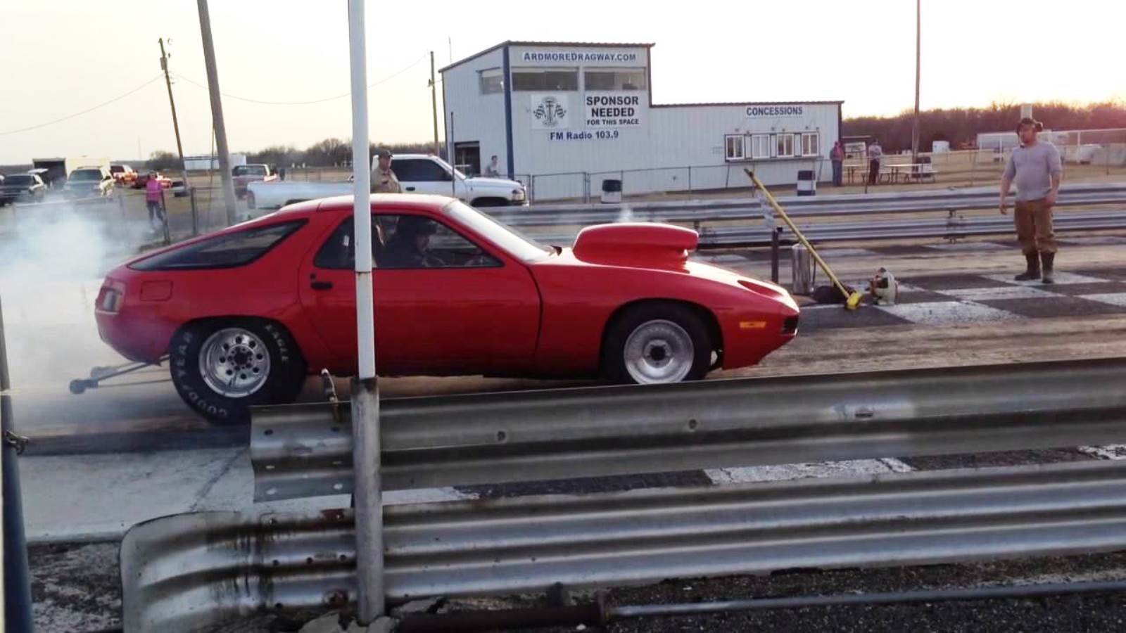 At least this sort of makes sense, as there were lots of used 928 on the market at one time with service and maintenance issues. A big american V8 fits under the hood easily enough, though you may need to swap in a Ford 9" rear end if you plan on running big sticky slicks like that.