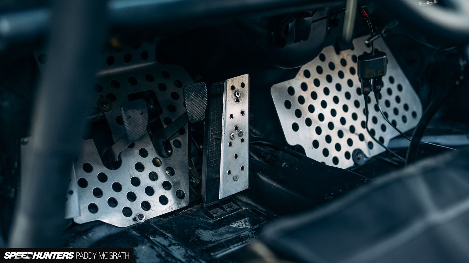 Given how much work has gone into keeping the chassis of the car light, it is no surprise to see a completely spartan interior. The customization to the pedal box area is quite unique, with the custom gas pedal spacer most likely helping with heal-toe shifting.