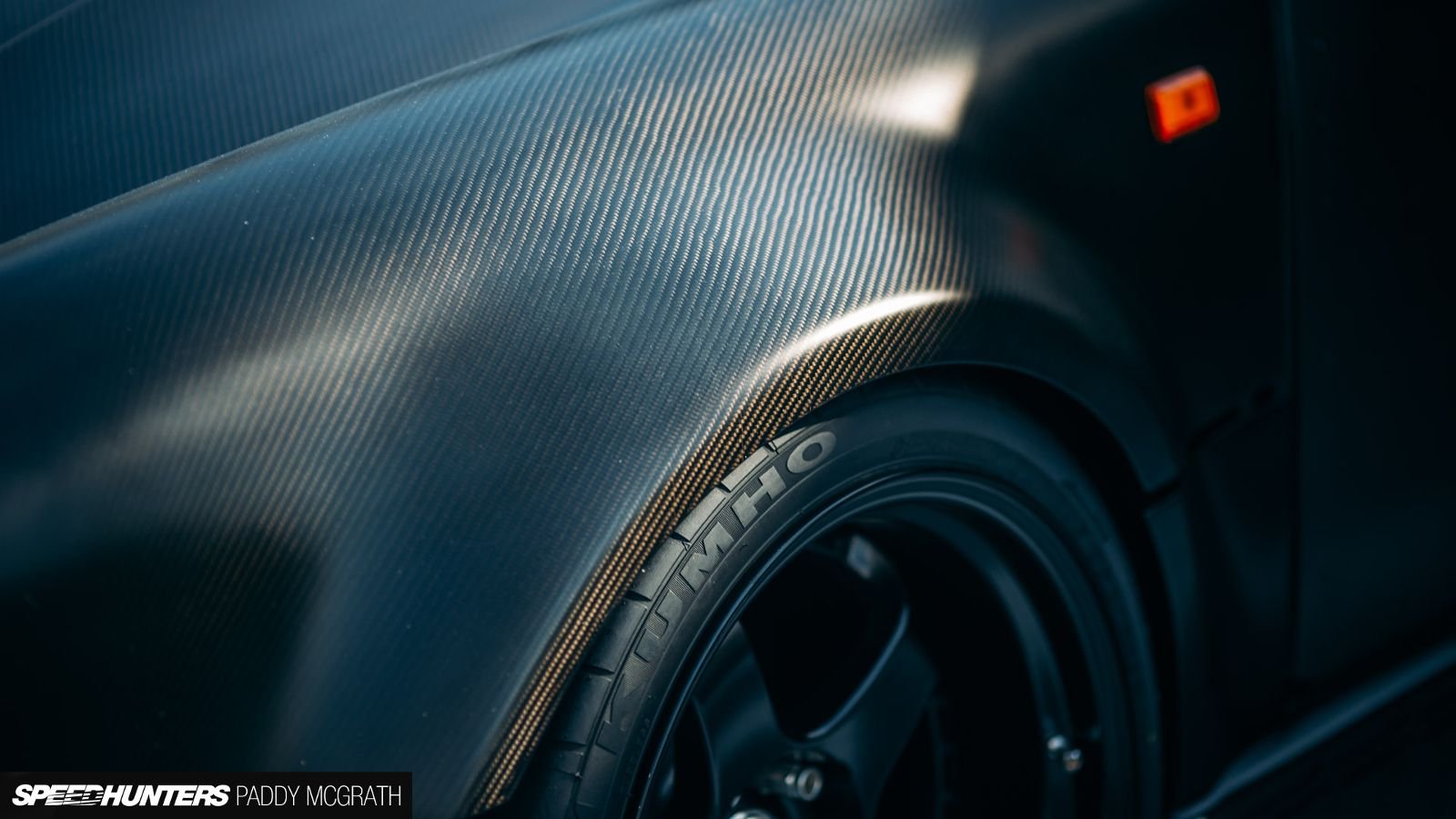 The craziest bit of carbon work has to be the one piece clamshell front end though. All this carbon work was done for the sake of lightness. Even all the glass was replaced with polycarbonate. Kakuma's car started off life as a non-turbo model and is still powered by the basically stock 3.2-liter. Since power was limited the choice to "add lightness" was made instead. But the idea to leave the car naturally aspirated is not the only choice Kakuma-san made that may make some people cringe.
