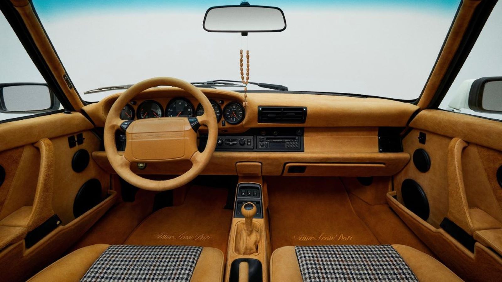 The fully custom interior features Schott sunflower leather and Loro Piana houndstooth, the same materials highlighted in Aimé Leon Dore’s Fall/Winter 2020 collection. Rich top-grain leather wraps the dashboard, steering wheel, and door panels, while the reverse suede side of the leather covers the headliner and sunroof.Masterful Design