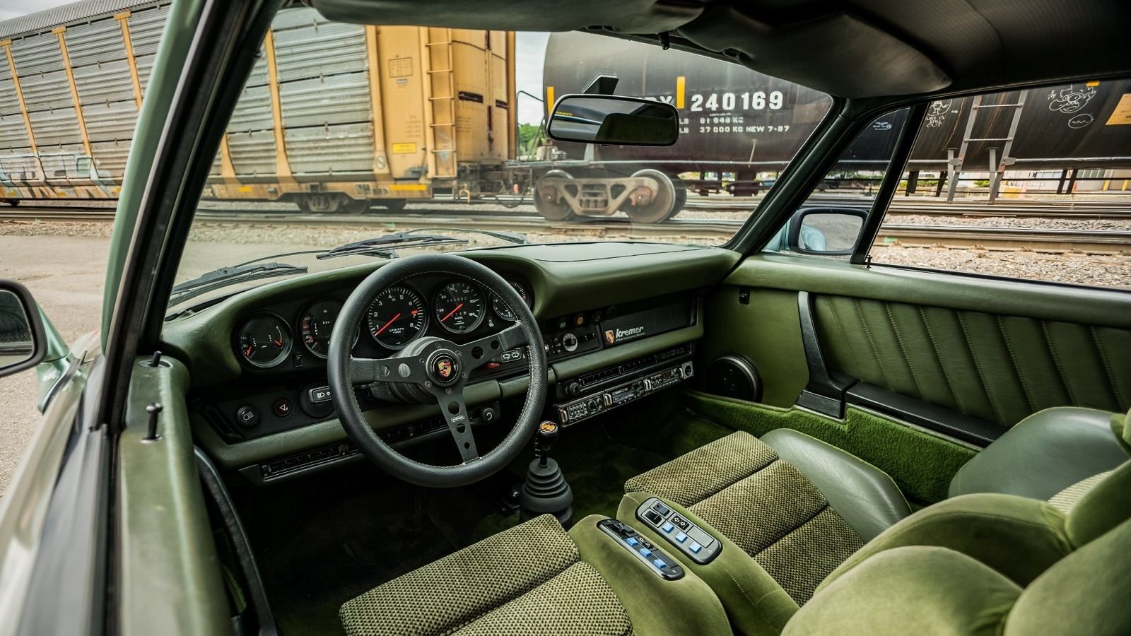 This particular car began life as a 1976 930 Turbo which was special-ordered from the factory with Ice Green Metallica paint and unique green upholstery. Several years later the car was sent over to Kremer Racing to be outfitted with their 935K package that included not only body kit components but also interior bits and performance upgrades.