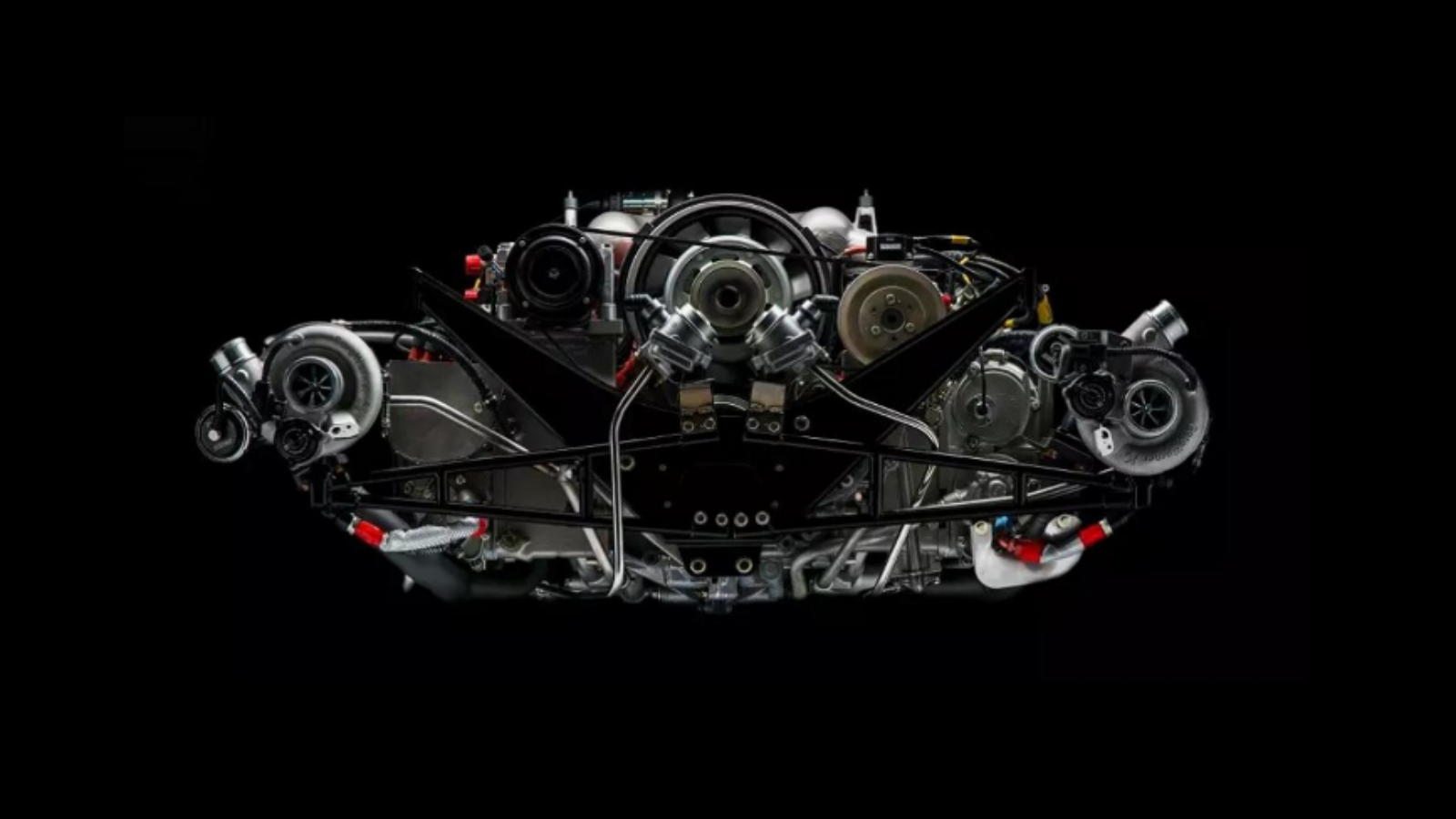 Bruce Canepa has created three successive generations of his upgraded Porsche 959. The first generation introduced more than 15 years ago yielded 576 horsepowers. The second generation introduced a few years later, yielded 640 horsepowers. The third generation, introduced in 2016, yields an astonishing 763 horsepowers and 635 ft/lb of torque. When the Porsche 959 came from the factory it had only 450 horsepowers. To achieve this remarkable increase in power, Bruce Canepa installs a Borg-Warner parallel twin-turbo system instead of the factory installed sequential turbo system. The new engine also gets among other things new wastegates, an optimized cam timing, upgraded fuel system, high output ignition system, updated emission control system and a custom-made stainless steel exhaust system.