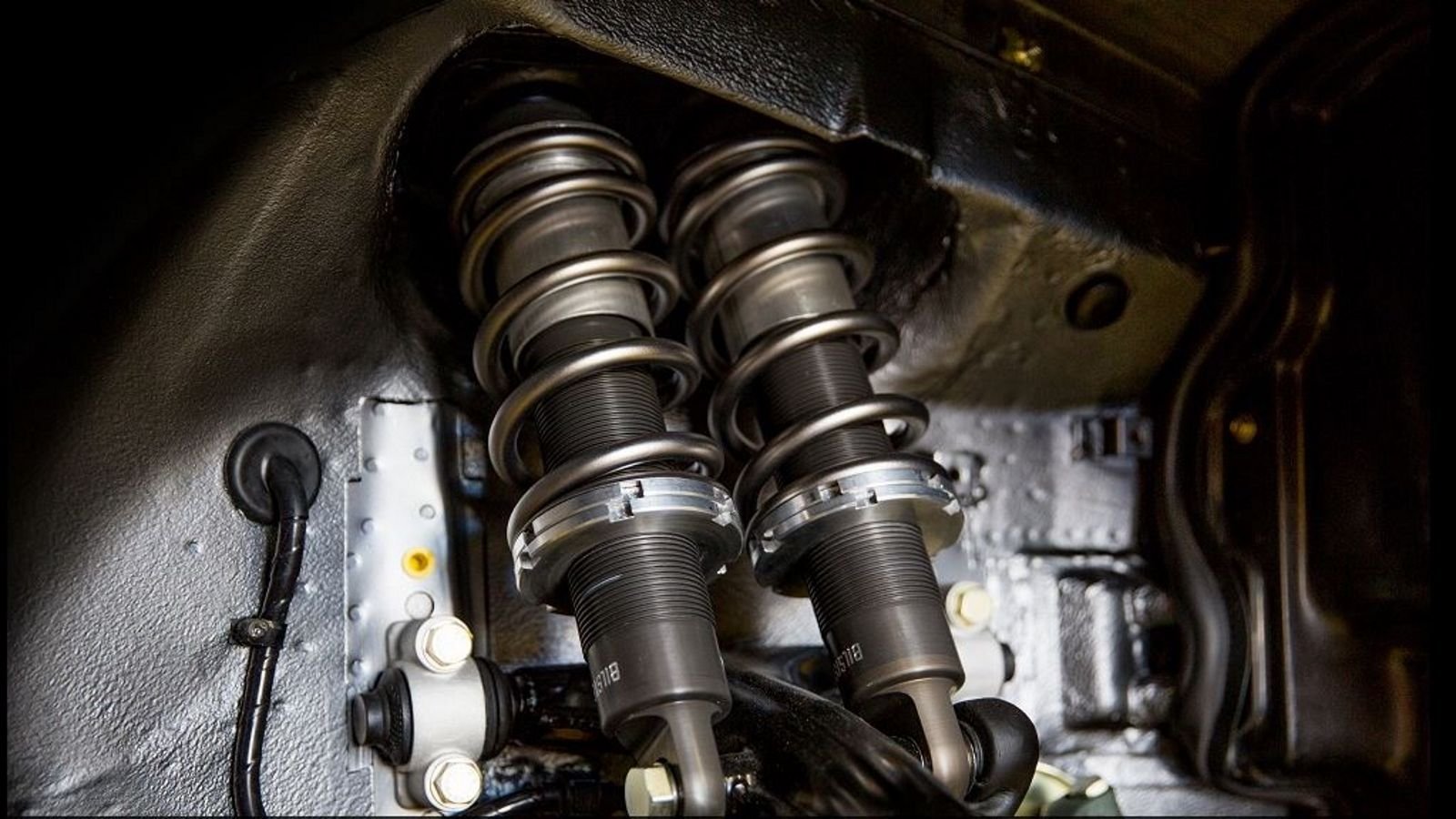 Towards the end of Porsche 959 production, twenty-nine Porsche 959 S models were built. The 959 S cars had an improved suspension, getting rid of the adjustable hydraulic system that had been used previously. The new suspension provided a substantial weight saving and featured dual coil-over springs in each front corner with gas shocks and a single coil-over spring on each rear corner. Bruce Canepa use this factory 959 S system and has then further developed it with a patented gas strut design and titanium coil-over springs. This creates a greatly improved handling and a 1" lower ride height compared to the stock Porsche 959 S.