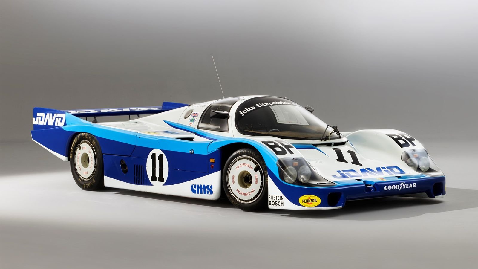 One of only nine privateer race cars built in 1983 by Porsche, the car with the chassis number 956-110 was raced in the World Endurance Championship that year by the Fitzpatrick racing team. The 956 made its race debut at the 24 hours of Le Mans endurance race in '83 and was driven by John Fitzpatrick, David Hobbs, and Dieter Quester. A mechanical failure brought the team's race to a premature end on that day, but they would go on to snatch their first win later in the season at the Can-Am Road America.