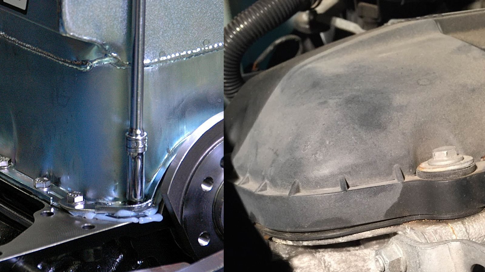 Cam covers and oil pans are really in a three-way tie with carburetors when it comes to warpage due to overtightening, but since carbs aren't the norm anymore we'll focus on the first two. Whether your covers and pans are a thin stamping or an alloy casting, they are just weak metal. Think of hold-down fasteners as being a bed of nails, as opposed to railroad spikes. You want an equal, light pressure on all of them, even going as far as torquing them down in sequence and in stages—like head nuts/bolts or lug nuts. If one nail on that bed is higher up, or if you aren't lowered onto the bed evenly, bad things will happen. Check the flatness of your pan or cover before you bolt it onto your engine. Put your cover/pan on a perfectly flat surface such as a mill table or a surfacing stone, or hold a straight edge up to the sealing area of your piece, and check if you can see light. If you can, measure the gap with a feeler gauge. Gaskets and sealant are meant to seal irregularities but can't seal much of a gap. Your pan or cover will have to be straightened or machined flat again if the gap goes beyond what your gasket is able to bridge. Whatever you do, do not try to seal leaky gaps with an extra generous application of silicone sealant. First of all, it won't work so you're wasting your time. Second, the silicone can tear off or squeeze out and clog vital oil pickups and passages. Don't do it.