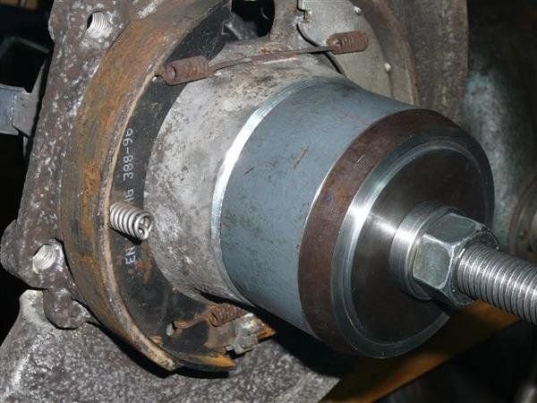 Jack up the suspension at the housing, so that the axle is parallel to the ground. Center the puller on the axle shaft, and then pop the hub off. To remove the bearing press, you can take it to a shop that has a hydraulic press or you can do it yourself. Remove the axle by removing the six 8mm bolts on the CV joint, and pulling it out. Remove the four bolts on the housing that hold the two bearing race retainers.
